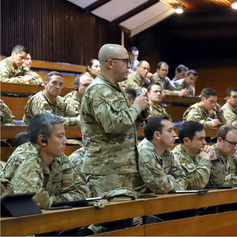 “Continuando con las actividades de extensión académica, el día 04 de junio se llevó a cabo la conferencia titulada “La Cultura Militar y Fuerza de Combate” dictada por el Director del Development, Concepts and Doctrine Centre del Ministerio de Defensa del Reino Unido, General de Brigada Aérea Fin Monahan, generándose una importante interacción con los alumnos y autoridades invitadas”