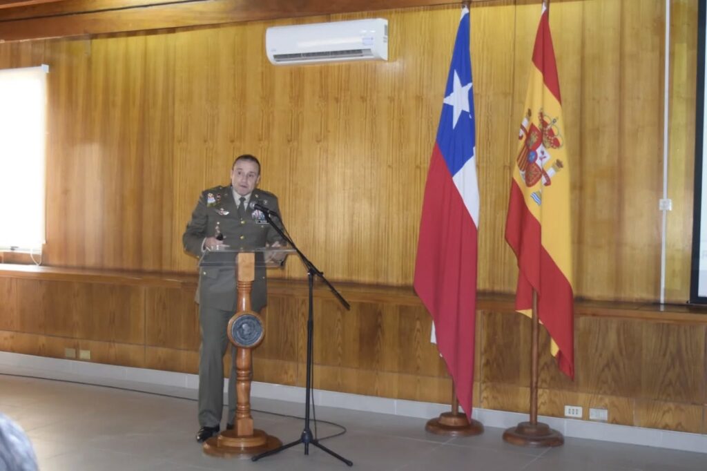 Hoy desarrollamos una actividad de intercambio académico con el Instituto Español de Estudios Estratégicos; esta consistió en dos exposiciones en primer lugar el Director del Instituto Español de Estudios Estratégicos, General de División Víctor Mario Bados Nieto, realizó una exposición sobre “La Geopolítica de España en relación con la Seguridad y la Defensa” y posteriormente el Teniente Coronel Branko Versalovic Serrano, Jefe del Centro de Estudios Estratégicos de la Academia de Guerra, expuso sobre los “Desafíos Geopolíticos actuales de Chile y su proyección en la Seguridad y Defensa”.